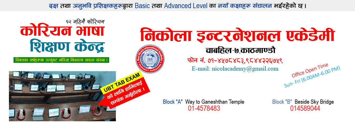 Nicola Int'l Academy is one of the highly ranking education academy in Nepal which was established in the year 2013. Nicola International Academy, committed to provide the dynamic and excellent educational opportunities, is situated at Chabahil-7,Kathmandu with the tranquil and peaceful environment for the betterment of study regarding the interests and the needs of students, where they can easily quench the quest of knowledge along with a dramatic excellence of the reputed company in various sectors together with the warm and kind help of qualified, energetic and renowned profession also, we are extremely proud of considering and determining such as efficient as well as effective student centered teaching style which is sure to build up the golden future of students.Established at the main ring road of Kathmandu, Nicola slowly aims to providing students with quality education that enables them to fair he challenges and light competition as posted by the present world scenario. That the world has changed over fine are consequently the demand has changed but supply has remained constant of founding this purely academic institution and full fill meant of the demands of thousands of guardians and students is what the institute has been doing since its inception.